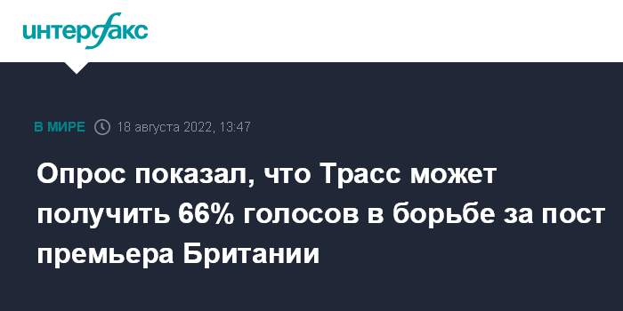 Опрос показал, что Трасс может получить 66% голосов в борьбе за пост премьера Британии