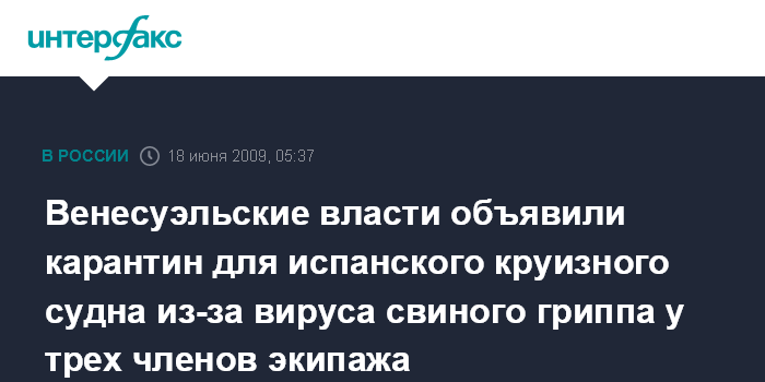 Венесуэльские власти объявили карантин для испанского круизного судна из-за вируса свиного гриппа у трех членов экипажа