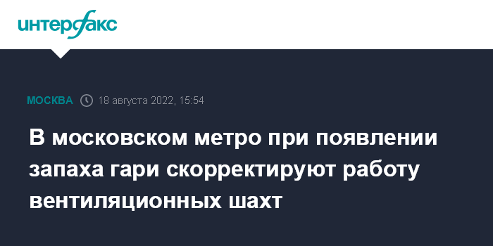 В московском метро при появлении запаха гари скорректируют работу вентиляционных шахт