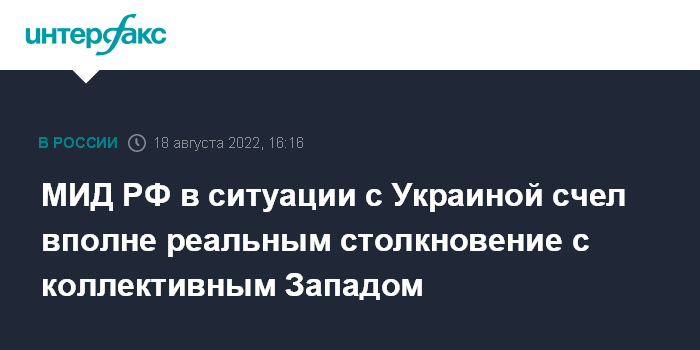 МИД РФ в ситуации с Украиной счел вполне реальным столкновение с коллективным Западом
