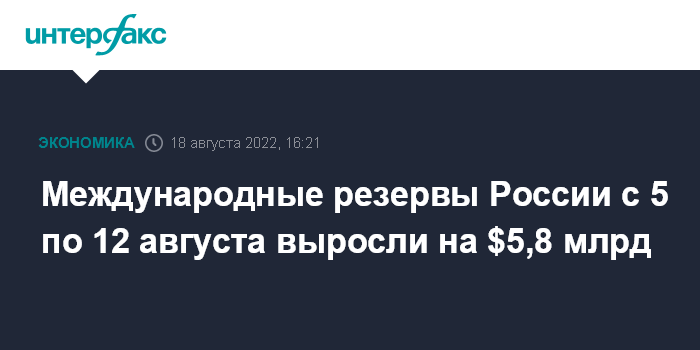 Международные резервы России с 5 по 12 августа выросли на $5,8 млрд