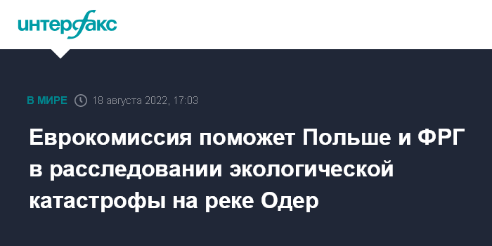 По его словам, Еврокомиссия приветствует создание совместной польско-германской экспертной группы для расследования этой катастрофы. Он сообщил, что ЕК и ее соответствующие службы выделяют в помощь польским и германским специалистам своих экспертов, чтобы найти причины катастрофы и попытаться смягчить ее последствия для окружающей среды.