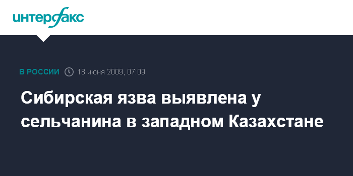 Астана. 18 июня. ИНТЕРФАКС-КАЗАХСТАН - Житель поселка Аккемир Актюбинской области Казахстана госпитализирован с диагнозом "сибирская язва", сообщило в четверг МЧС республики.