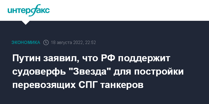 "Не пустые слова, что мы многое делаем, чтобы проект "Звезда" состоялся, в том числе это касается и пакета заказов. Нужно сделать все, правительство должно помочь "Звезде", чтобы по максимуму выполнить ожидания заказчика. Потому что если "НОВАТЭК" выполнит свои планы по созданию новой площадки по производству СПГ (речь про проект "Арктик СПГ 2" - ИФ), продукты надо возить, что же им делать?", - отметил президент.