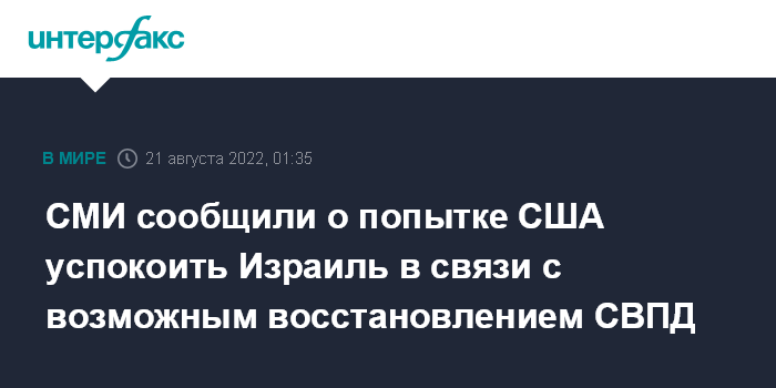 СМИ сообщили о попытке США успокоить Израиль в связи с возможным восстановлением СВПД