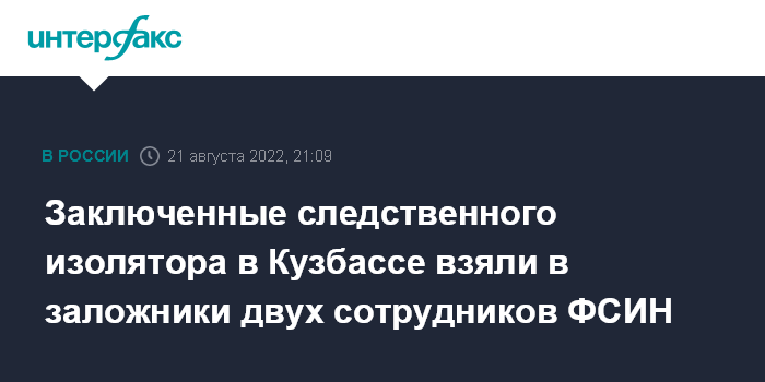 Москва. 21 августа. INTERFAX.RU - Заключенные следственного изолятора № 1 в Кемерове взяли двух сотрудников ФСИН в заложники, сообщили "Интерфаксу" в пресс-службе главного управления ФСИН по Кемеровской области.