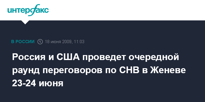 Россия и США проведет очередной раунд переговоров по СНВ в Женеве 23-24 июня