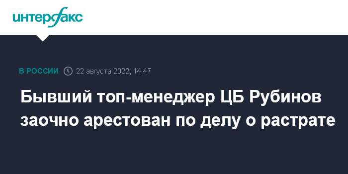 Бывший топ-менеджер ЦБ Рубинов заочно арестован по делу о растрате