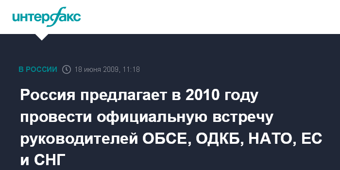 Россия предлагает в 2010 году провести официальную встречу руководителей ОБСЕ, ОДКБ, НАТО, ЕС и СНГ