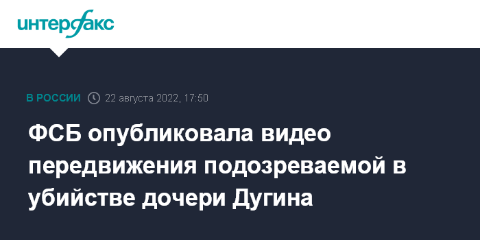 Москва. 22 августа. INTERFAX.RU - Центр общественных связей (ЦОС) ФСБ в понедельник опубликовал видео с гражданки Украины Натальи Вовк, подозреваемой в убийстве журналистки Дарьи Дугиной, дочери общественного деятеля Александра Дугина.