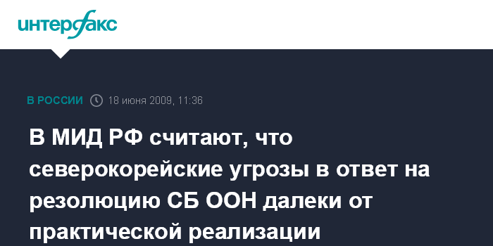 Москва. 18 июня. INTERFAX.RU - Россия призывает мировое сообщество не трактовать "прямолинейно" заявление КНДР о возмездии в случае принятия соответствующей резолюции СБ ООН.