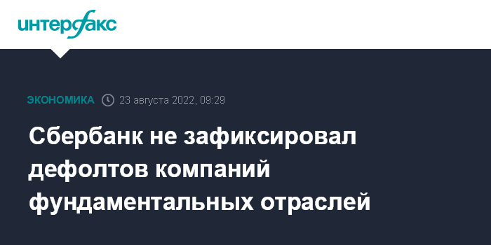 Москва. 23 августа. INTERFAX.RU - Сбербанк не видит массовых запросов на реструктуризации кредитов со стороны компаний фундаментальных отраслей, дефолта нет ни у кого, заявил зампред банка Анатолий Попов.