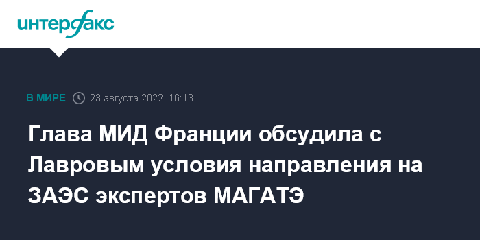 Глава МИД Франции обсудила с Лавровым условия направления на ЗАЭС экспертов МАГАТЭ