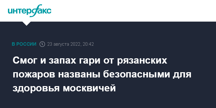 Гарь от рязанских лесных пожаров долетела до Москвы утром 17 августа, и с тех пор то исчезает, то появляется снова. По расчетам Росгидромета, запах дыма и смог могут ощущаться в столице вплоть до 25 августа, научный руководитель Гидрометцентра Роман Вильфанд допускает, что изменение погоды 26 августа может улучшить ситуацию, но прогнозировать полное исчезновение смога в городе будет нельзя до полного тушения лесных пожаров.