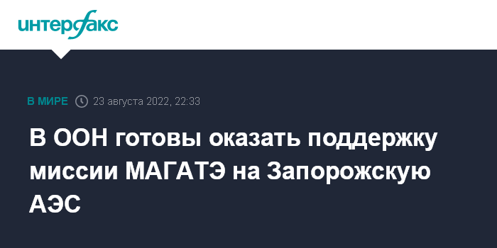 В ООН готовы оказать поддержку миссии МАГАТЭ на Запорожскую АЭС
