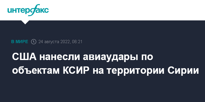Москва. 24 августа. INTERFAX.RU - Центральное командование ВС США сообщило, что американские ВВС по указанию президента США Джо Байдена нанесли удары по объектам на территории Сирии, которые, как утверждается, принадлежат иранскому Корпусу стражей исламской революции (КСИР).