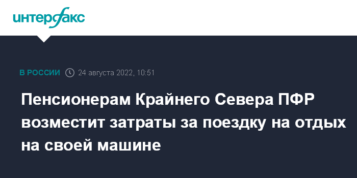 Пенсионерам Крайнего Севера ПФР возместит затраты за поездку на отдых на своей машине