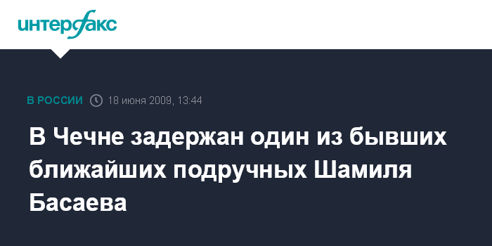 Москва. 18 июня. INTERFAX.RU - В Чечне задержан бывший комендант бандгруппы Шамиля Басаева, сообщили "Интерфаксу" в четверг в объединенном пресс-центре оперативного штаба по Чеченской республике.