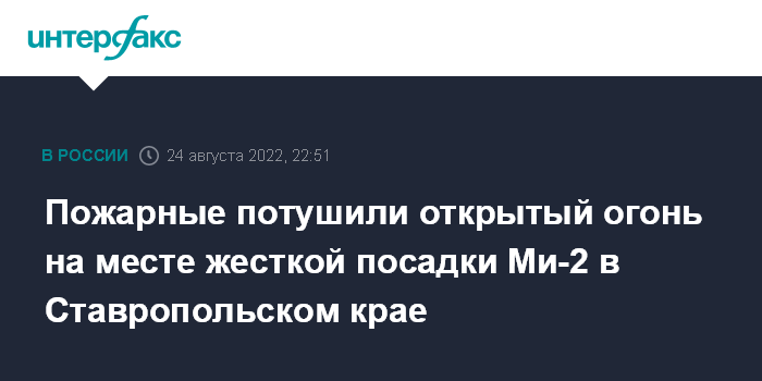 Пожарные потушили открытый огонь на месте жесткой посадки Ми-2 в Ставропольском крае