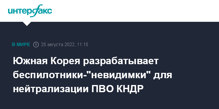 "Южная Корея нацеливается на разработку военных беспилотников с технологией "стелс", которые могут внести вклад в нейтрализацию северокорейской системы ПВО", - отмечает издание.