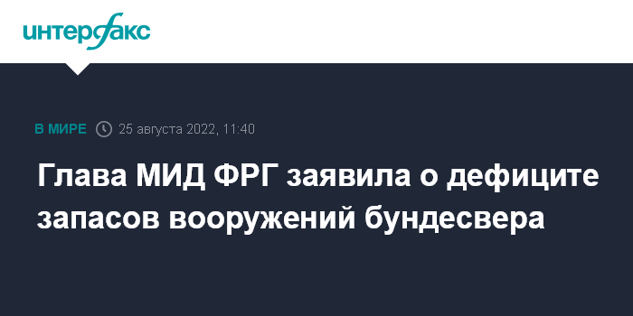 Глава МИД ФРГ заявила о дефиците запасов вооружений бундесвера