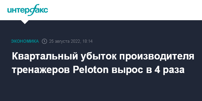 Москва. 25 августа. INTERFAX.RU - Американский производитель спортивных тренажеров Peloton Interactive Inc. увеличил чистый убыток в четвертом квартале 2022 финансового года почти в четыре раза на фоне падения спроса на продукцию компании.