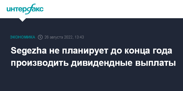 Москва. 26 августа. INTERFAX.RU - Segezha Group до конца года не планирует производить дивидендные выплаты, при принятии решения о выплате дивидендов по итогам 2022 года в следующем году будет придерживаться дивидендной политики, сообщил вице-президент компании по финансам и инвестициям Ровшан Алиев.