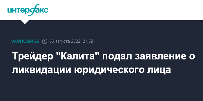 Трейдер "Калита" подал заявление о ликвидации юридического лица