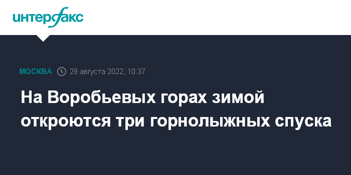 Москва. 29 августа. INTERFAX.RU - Ближайшей зимой на Воробьевых горах в Москве откроют три горнолыжных спуска длиной до 170 до 325 метров, сообщил в блоге мэр города Сергей Собянин.