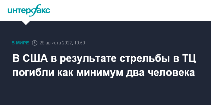 Москва. 29 августа. INTERFAX.RU - В американском штате Орегон в результате стрельбы в торговом центре погибли как минимум два человека, стрелка обнаружили мертвым. Об этом сообщает в понедельник CNN.