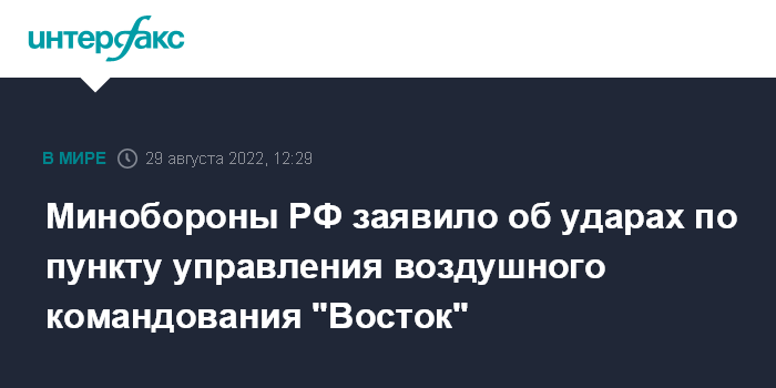 Минобороны РФ заявило об ударах по пункту управления воздушного командования "Восток"