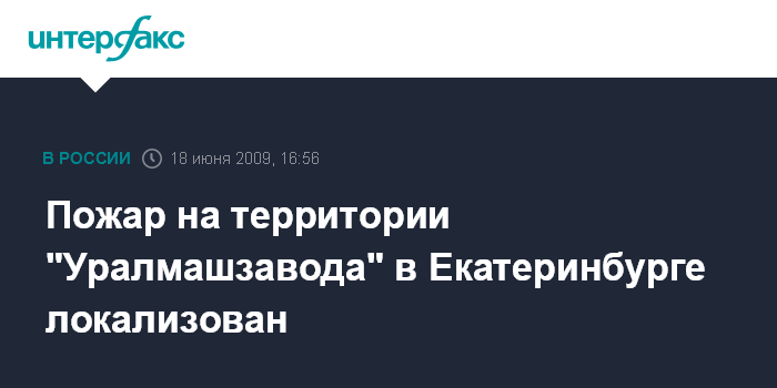 Москва. 18 июня. INTERFAX.RU - Крупный пожар на территории "Уралмашзавода" в Екатеринбурге удалось локализовать, сообщили агентству "Интерфакс-Урал" в четверг в пресс-службе ГУ МЧС РФ по Свердловской области. Жертв и пострадавших нет. Тушение продолжается.