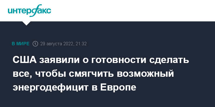 "Мы обеспокоены в связи с вероятной нехваткой энергоресурсов в Европе по мере приближения зимы. Мы продолжаем работать с поставщиками, энергетическими компаниями по всему миру для того, чтобы облегчить любой дефицит, который может возникнуть. Мы постараемся сделать для этого все возможное", - сказал Кирби на брифинге.