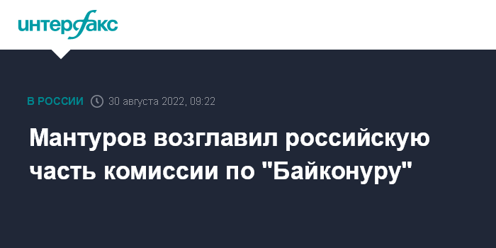 Москва. 30 августа. INTERFAX.RU - Вице-премьер - глава Минпромторга Денис Мантуров назначен председателем российской части российско-казахстанской межправительственной комиссии по комплексу "Байконур".