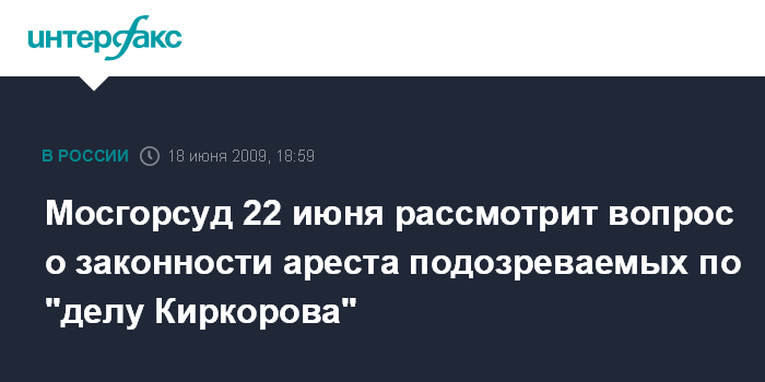 Мосгорсуд 22 июня рассмотрит вопрос о законности ареста подозреваемых по "делу Киркорова"