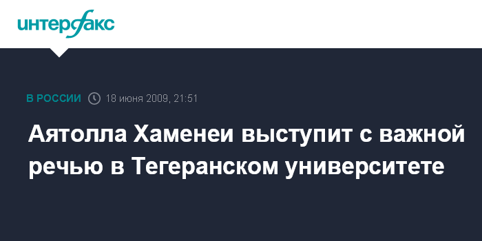 Вашингтон. 18 июня. INTERFAX.RU - Руководитель Исламской республики Иран аятолла Али Хаменеи намерен прочесть в пятницу проповедь в Тегеранском университете, спустя несколько дней после столкновений между стражами порядка и студентами этого учебного заведения, сообщает CNN.