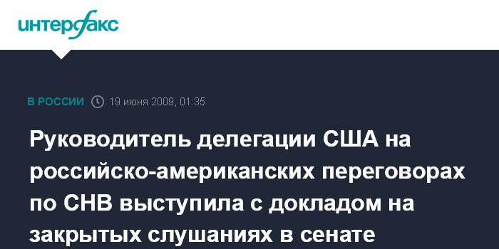 Руководитель делегации США на российско-американских переговорах по СНВ выступила с докладом на закрытых слушаниях в сенате
