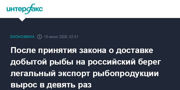 После принятия закона о доставке добытой рыбы на российский берег легальный экспорт рыбопродукции вырос в девять раз