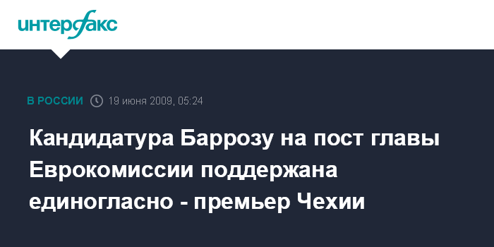 "Я очень рад, что Жозе Мануэл Баррозу получил широкую, единогласную поддержку от глав государств и правительств. Они четко поддерживают его кандидатуру как будущего президента Европейской комиссии. Нынешнее чешское президентство и предстоящее шведское президентство получили сильный мандат для консультаций с политическими группами в Европейском парламенте для номинации Баррозу как президента Еврокомиссии", - заявил утром в пятницу на пресс-конференции в Брюсселе премьер-министр председательствующей в ЕС Чехии Ян Фишер.