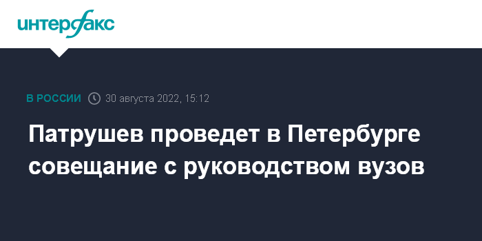 Москва. 30 августа. INTERFAX.RU - Секретарь Совета безопасности России Николай Патрушев 31 августа проведет в Петербурге совещание с ректорами вузов, сообщили в пресс-службе аппарата Совбеза.