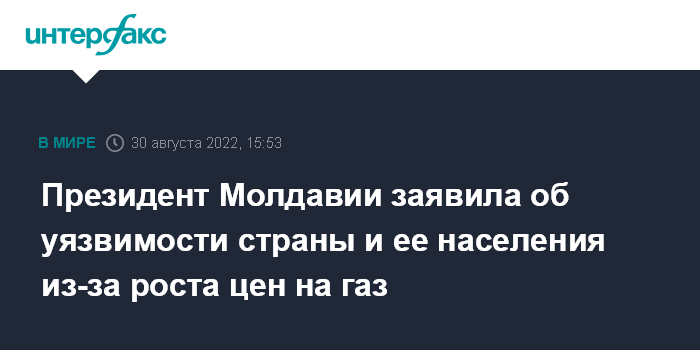 Президент Молдавии заявила об уязвимости страны и ее населения из-за роста цен на газ