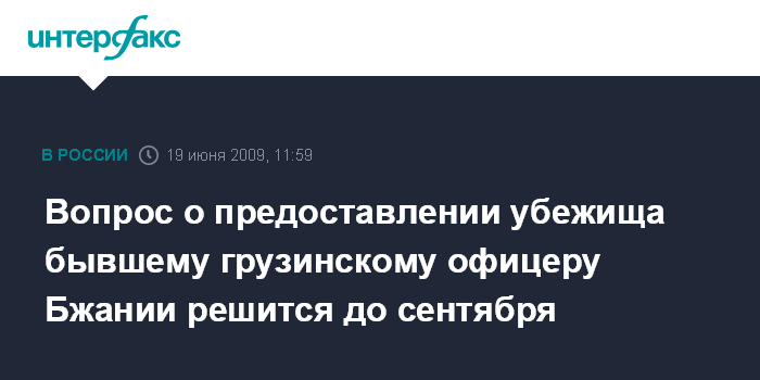 Москва. 19 июня. INTERFAX.RU – Федеральная миграционная служба (ФМС) должна до начала сентября решить вопрос о предоставлении бывшему грузинскому офицеру Алику Бжании убежища в России.