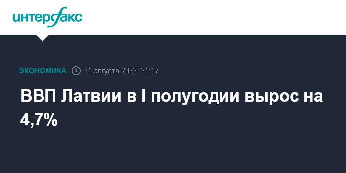 Москва. 31 августа. INTERFAX.RU - В I полугодии 2022 года ВВП Латвии вырос на 4,7% в годовом измерении и составил 17,7 млрд евро, сообщило Центральное статистическое управление страны.