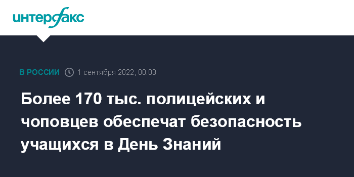 "Непосредственно 1 сентября на охрану общественного порядка в школах заступят 140 тыс. сотрудников органов внутренних дел и Росгвардии, порядка 33 тыс. представителей частных охранных структур, в том числе это и казачество, и иные формирования правоохранительной направленности. Естественно предусмотрен резерв на случай осложнения оперативной обстановки", - сказал Колесник журналистам на пресс-конференции.
