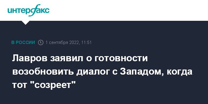 Лавров заявил о готовности возобновить диалог с Западом, когда тот "созреет"