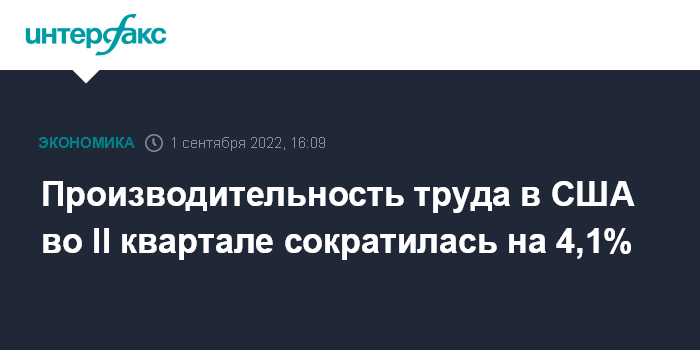 По сравнению со вторым кварталом 2021 года производительность труда упала сократилась на 2,4%, что стало максимальным снижением в годовом выражении с первого квартала 1948 года.