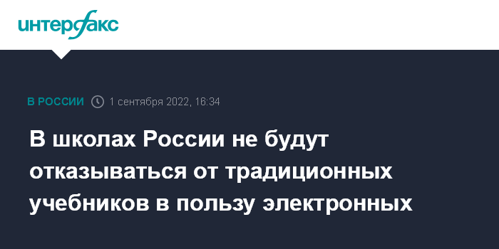 Москва. 1 сентября. INTERFAX.RU - Минпросвещения РФ не намерено отказываться от печатных учебников и заменять их на электронные, заявил глава ведомства Сергей Кравцов.