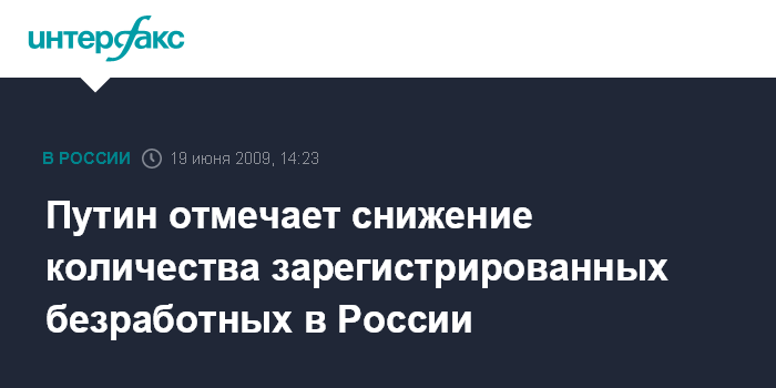 Москва. 19 июня. INTERFAX.RU - Количество зарегистрированных безработных начало снижаться и на 10 июня составило 2 млн 190 тыс. человек, сообщил премьер-министр РФ Владимир Путин. На заседании Комиссии по вопросам регионального развития в Барнауле в пятницу он заявил, что это на 100 тыс. меньше, чем в апреле, когда был отмечен пик роста безработицы.
