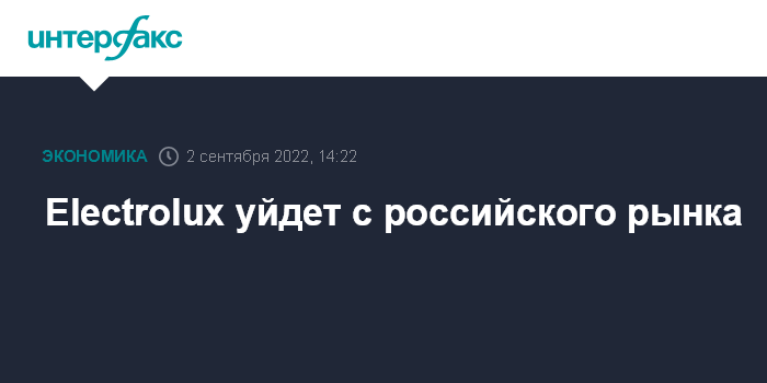 Москва. 2 сентября. INTERFAX.RU - Шведская Electrolux AB, один из крупнейших в мире производителей бытовой техники, приняла решение уйти с рынка РФ и продать российский бизнес местному менеджменту, говорится в ее пресс-релизе.