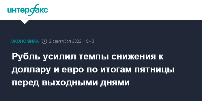 Как рассказал "Интерфаксу" аналитик компании "КСП Капитал УА" Михаил Беспалов, на торгах в пятницу российская валюта демонстрировала снижение к доллару, при этом к евро рубль дешевел сильнее. "Из сегодняшних новостей можно выделить заявление министров финансов стран G7, которые подтвердили намерение установить потолок цен на российскую нефть. Механизм подразумевает запрет оказания услуг по перевозке нефти из России, если она поставляется по цене выше согласованного потолка. Одновременно с этим Reuters со ссылкой на источники сообщает о том, что на заседании 5 сентября министры ОПЕК+, вероятно, сохранят текущие квоты на добычу, однако не исключено и их сокращение. Ноябрьский фьючерс на Brent на бирже ICE в пятницу вечером торгуется выше уровня $94 за баррель. После вышедшей сегодня в США статистики по рынку труда оцениваемая по фьючерсам вероятность повышения ставки ФРС на 75 базисных пунктов в сентябре опустилась ниже 60%. Сильные данные по рынку труда принципиально не меняют картины, сложившейся на рынке после выступления главы ФРС Джерома Пауэлла в конце августа. Данные по августовской инфляции в США, которые могут повлиять на ситуацию, должны быть опубликованы 13 сентября", - говорит Беспалов.